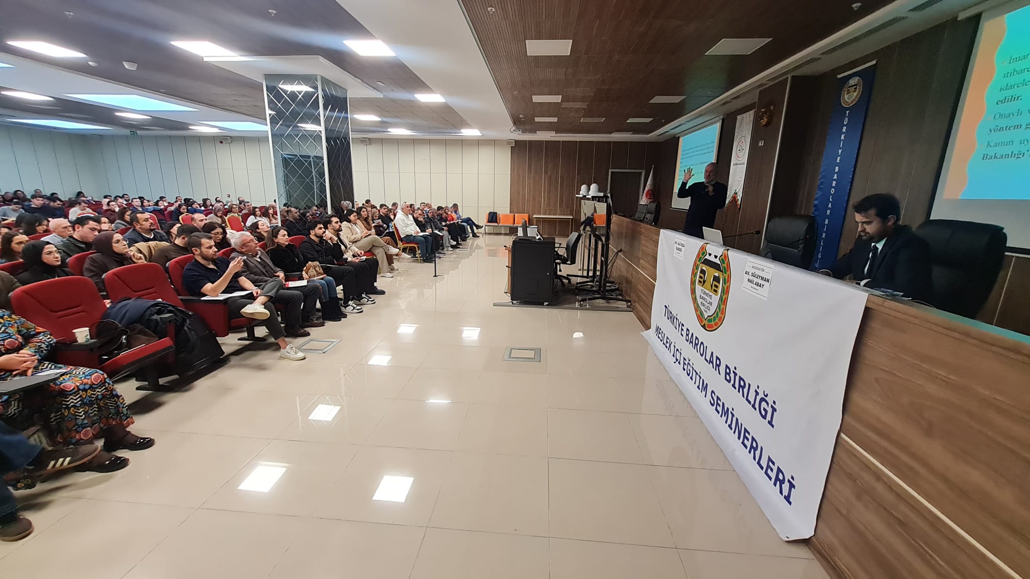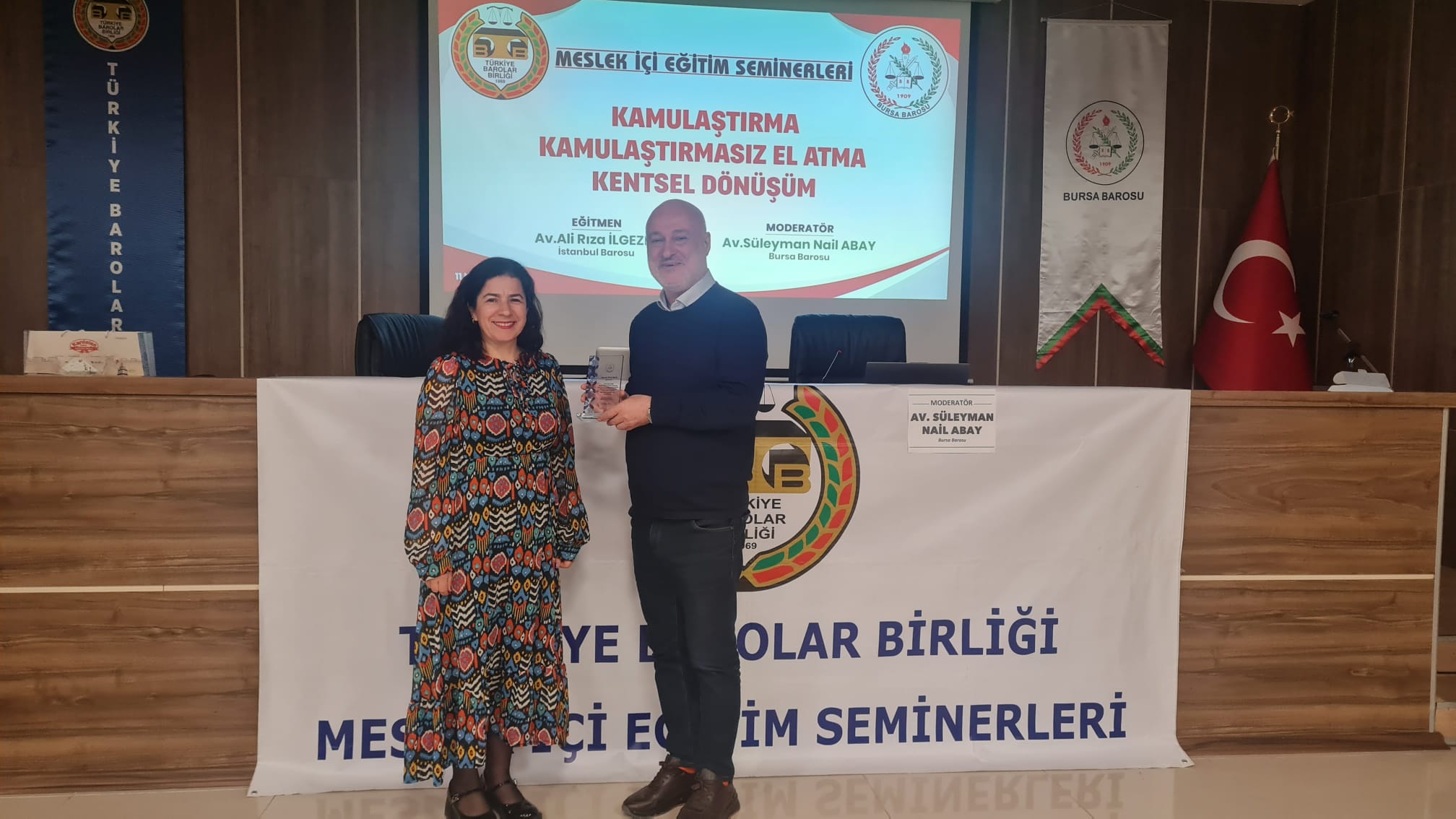Bursa Barosu ev sahipliğinde BAM konferans salonunda düzenlenen TBB Meslek İçi Eğitim Semineri'nde “Kamulaştırma-Kamulaştırmasız El Atma ve Kentsel Dönüşüm” konuları ele alındı.