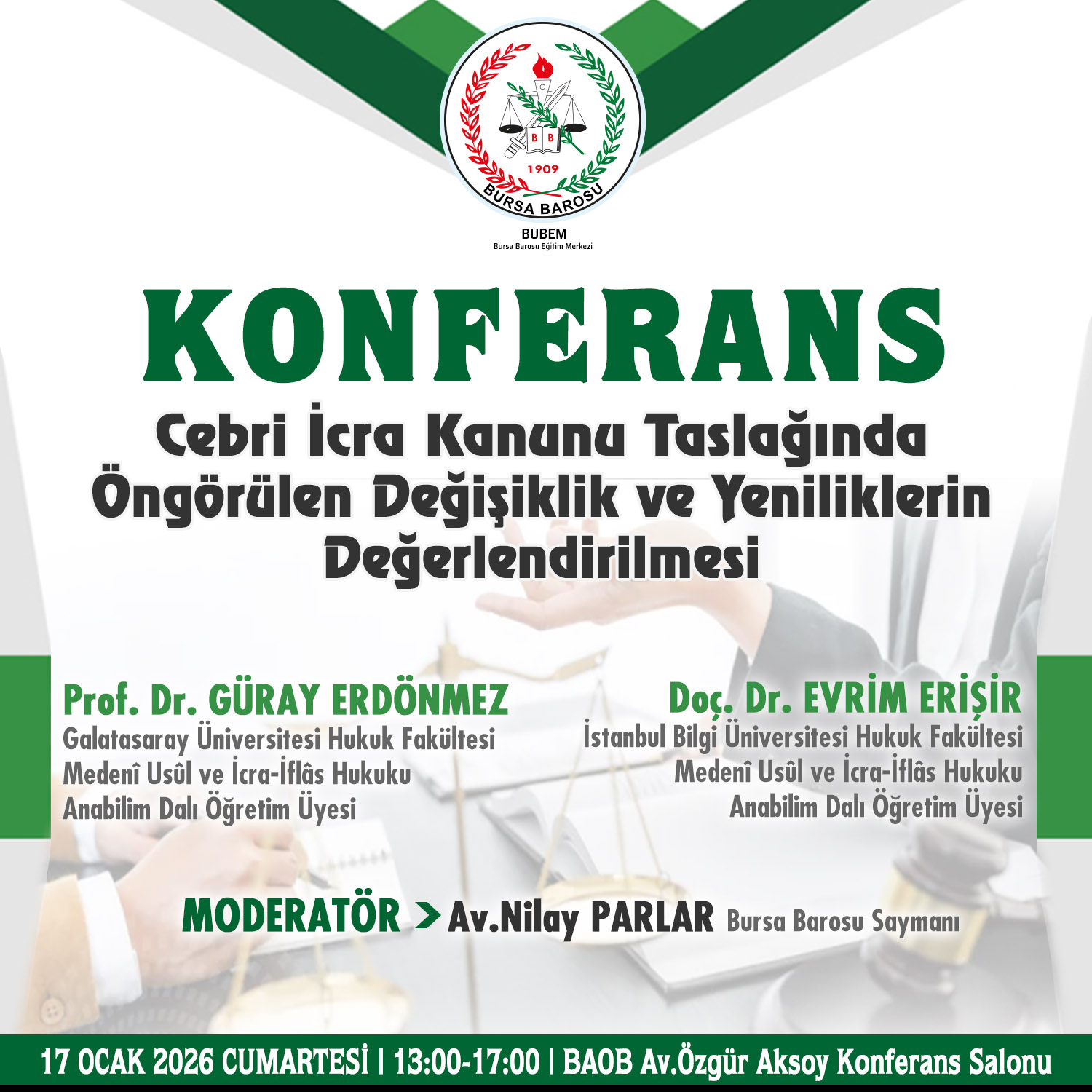 KONFERANS “CEBRİ İCRA KANUNU TASLAĞINDA ÖNGÖRÜLEN DEĞİŞİKLİK VE YENİLİKLERİN DEĞERLENDİRİLMESİ”