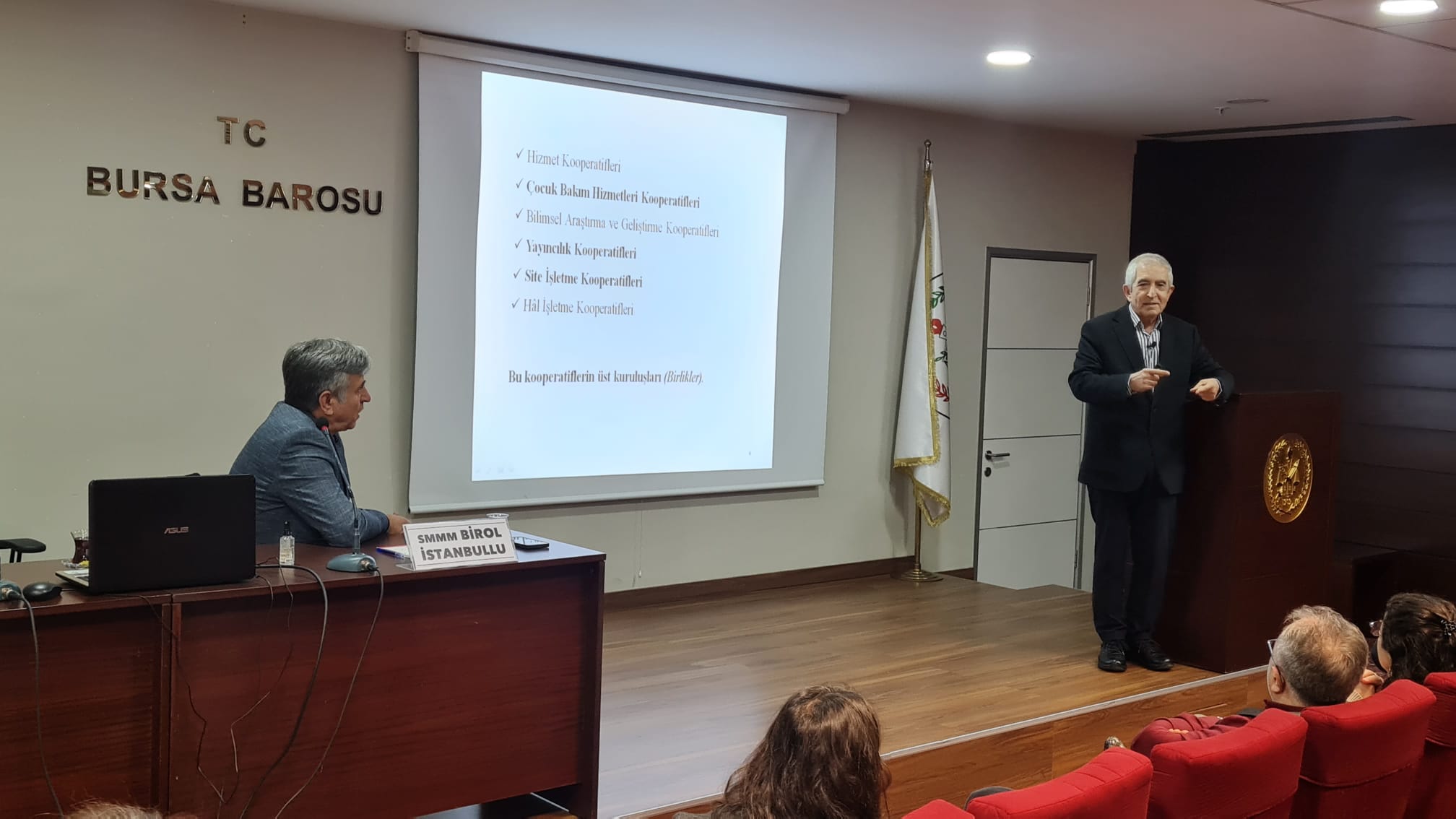 Bursa Barosu Eğitim Merkezi BUBEM tarafından düzenlenen “Kooperatif Hukuku” başlıklı konferans, Av. Özgür Aksoy Konferans Salonu'nda gerçekleştirildi. Av. Şeref Kısacık ile SMMM Birol İstanbullu, kuruluşundan tasfiyeye kadar kooperatif hukuku ve koopretaifçilik uygulamaları hakkında katılımcıları bilgilendirdi. Bursa Barosu Başkanı Av. Metin Öztosun, yönetim kurulu üyeleri ile birlikte izlediği konferans sonunda konuşmacılar Kısacık ve İstanbullu'ya anı plaketi verdi.