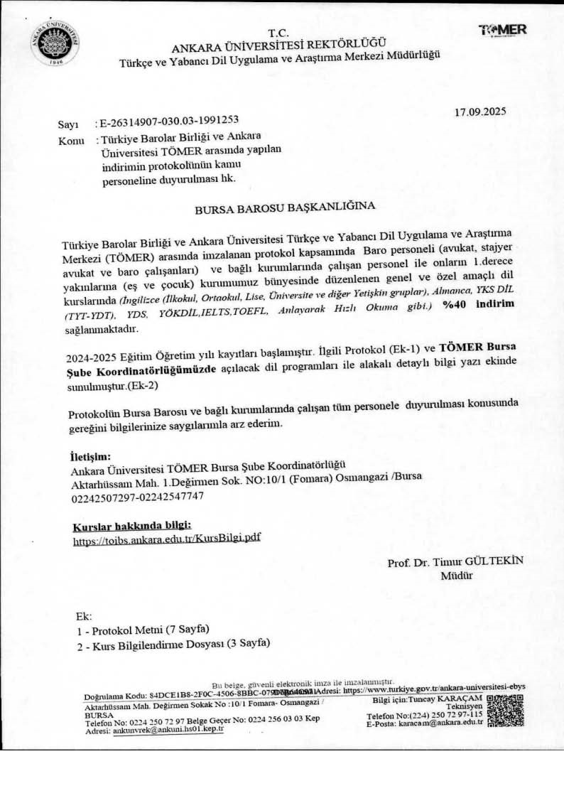 TBB ile Ankara Üniversitesi TÖMER arasında yapılan indirim protokolü.